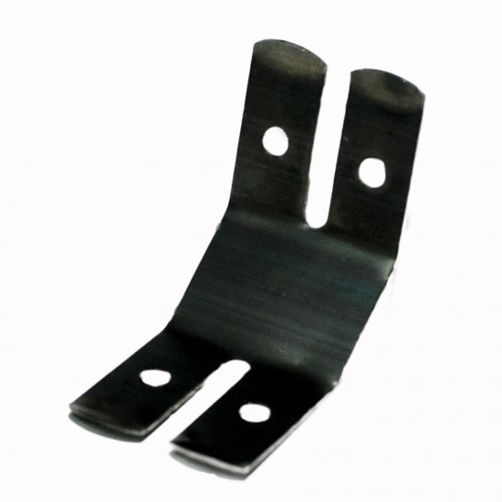 Descrierea produsului Piesa este realizată în formă de "V" din bandă laminată la rece pentru arcuri şi este protejată prin brunare. Clema este prevăzută pe cele două laturi înclinate cu două perechi de orificii coaxiale de ø4.5 mm pentru introducerea tijelor cu ochet.
